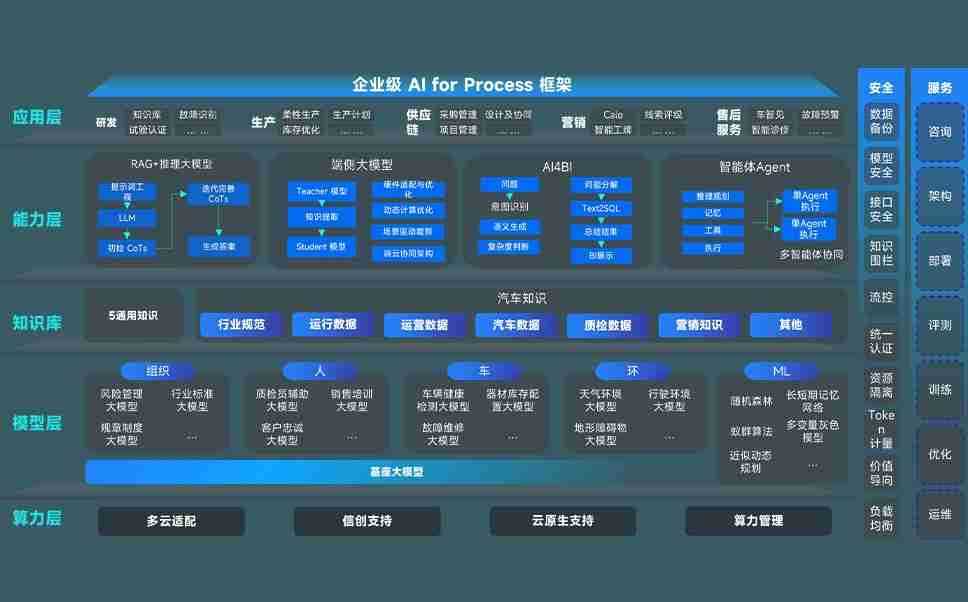 端到端的一站式AI工作空间深度融合了从企业战略规划到日常经营的全流程业务板块,,定向解决车企内部领域多、、、、部门多、、、、链条长、、、场景碎片化等难题,,,,支持车企快速构建以AI为核心的生产力写作体系,,,,实现任务执行与AI能力的无缝集成与交互