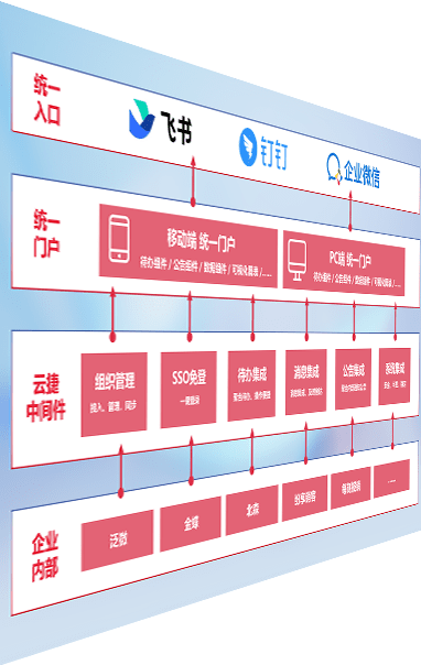 对协作平台提供支持服务,,支持企业应用与协作平台对接,,,,包含组织同步、、、、消息集成、、、、待办集成等。。。支持目前主流的协作平台:钉钉、、、企微和飞书。。。